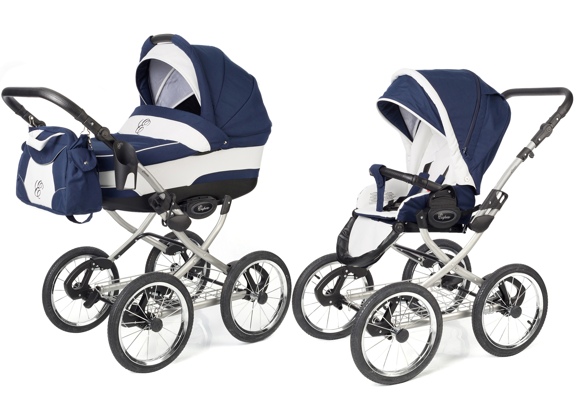 Коляска 2 в 1 Esspero Classic (шасси Grey) – это модульный набор, приобретая который для Вашего малыша, Вы получаете практически все самое необходимое для совершения полноценных прогулок на свежем воздухе, но в то же время экономите свои средства. Конструкция позволяет без труда и при помощи одной руки устанавливать любой из входящих в комплект блоков на единое шасси благодаря наличию универсальной системы крепления. Прочная алюминиевая рама получила надувные резиновые колеса увеличенного диаметра с возможностью снятия, а так же качественную систему пружинной амортизации. До того момента пока Ваш ребенок не научился самостоятельно сидеть необходимо использовать люльку для новорожденных, которая получила техническую возможность регулировать высоту подголовника, а так же интенсивность подачи воздуха внутрь. В дальнейшем Вы устанавливаете функциональный прогулочный блок, обладающий реверсивной функцией и регулируемой спинкой. Он полностью защищает Вашего кроху от случайных выпадений. Все тканевые элементы блоков защищены от влаги и грязи, а так же могут сниматься и поддаваться стирке.