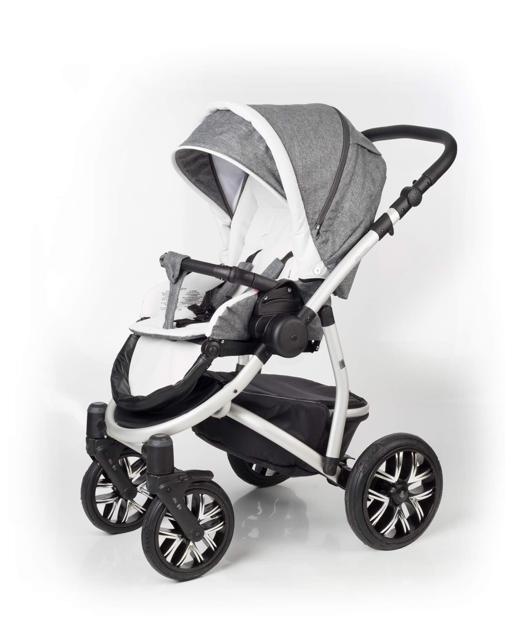 Прогулочная коляска Esspero Discovery (шасси Grey) получила высокопрочное шасси серого цвета из алюминия, а также функциональный и комфортный прогулочный блок, который можно устанавливать в двух направлениях движения. Все колеса коляски выполнены из резины, могут накачиваться и без труда снимаются. Передняя пара с возможностью вращения на 360 градусов при необходимости фиксируется в одном положении. Шасси имеет хорошую систему амортизации и вместительную корзину для перевозки вещей или покупок. Обтянутая экокожей ручка коляски изменяет высоту в нескольких положениях, подстраиваясь под рост родителя.
