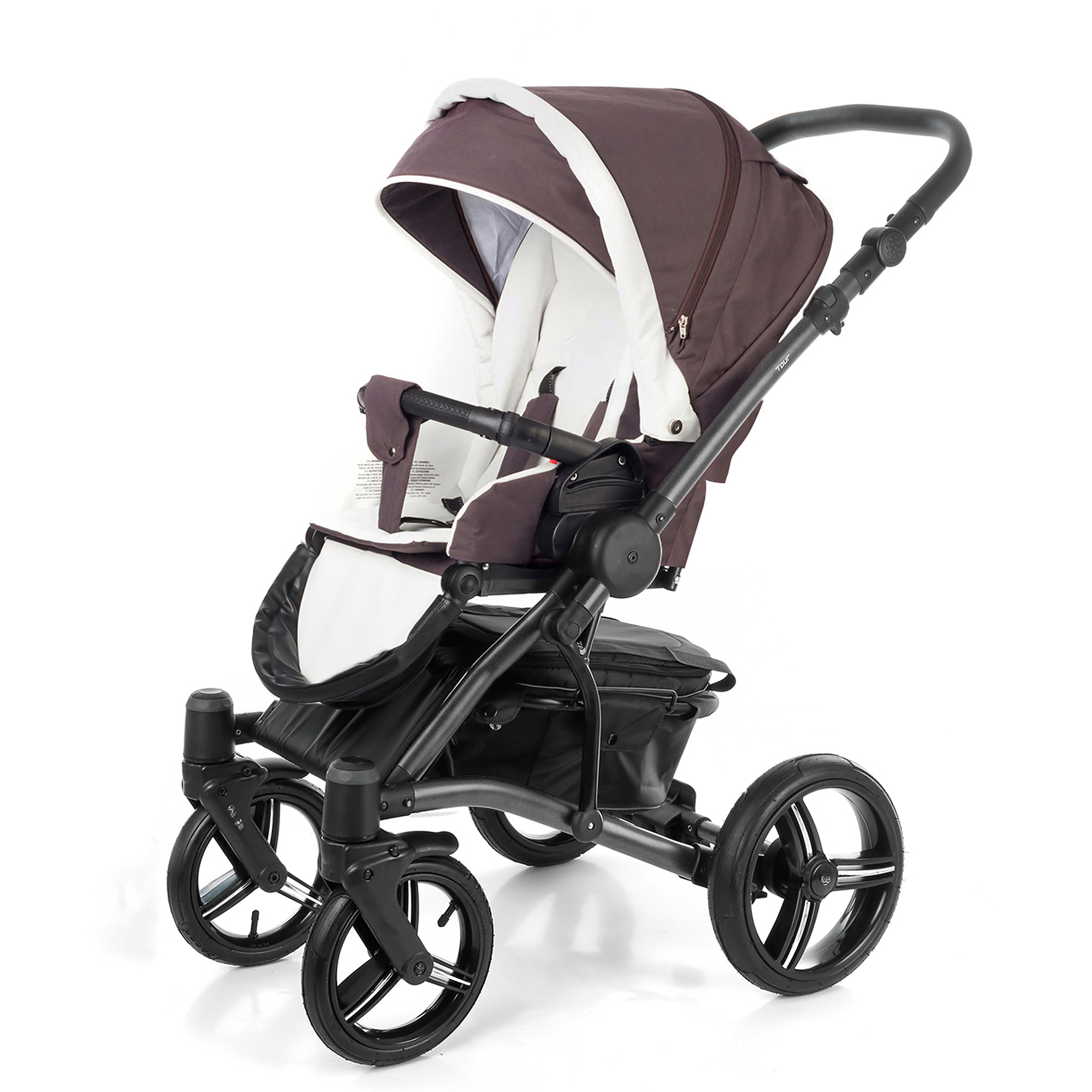 Прогулочная коляска Esspero Tour (шасси Graphite) для детей в возрасте от 6 месяцев до 3-х лет, поставлена на компактное и лёгкое шасси универсального графитового цвета, сделанное из прочного алюминия и оснащённое универсальной системой easy-fix, которая помогает при реверсивной перестановке прогулочного блока. Ведь маленьким детям так важно побольше общаться с мамой, а малышам постарше - познавать окружающим мир, так, что вы всегда сможете выбрать, в какую из сторон будет смотреть ваш ребёнок во время прогулки. Также удобный и вместительный прогулочный блок с регулировкой спинки из положения сидя в положение лёжа и поднимающейся для увеличения спального места подножкой подойдёт как для бодрствования, так и для отдыха. За безопасность отвечают 5-точечные ремни безопасности, съёмный бампер и паховый ремень, за защиту от непогоды - большой раскладывающийся капюшон, под которым легко укрыть ребёнка от жары или осадков, за маневренность и проходимость - надувные колёса шасси с передней поворотной парой и изменяемая по высоте ручка коляски, при помощи которой данным транспортным средством с комфортом для себя сможет управлять человек любого роста. Шасси складывается компактной книжкой, которая не занимает много места для хранения и помещается в стандартный багажник автомобиля.