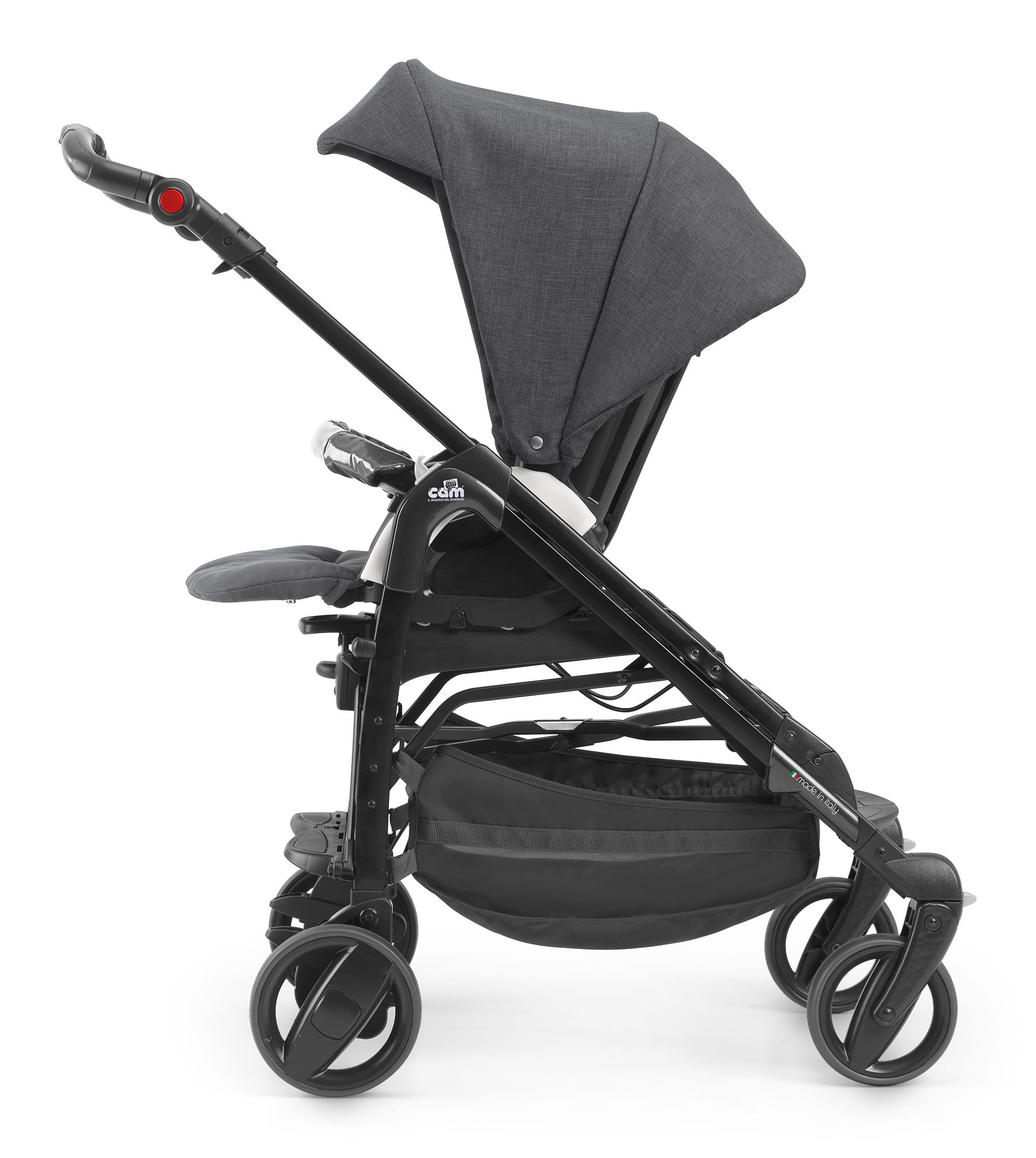 Коляска 3 в 1 Cam Combi Family – многофункциональная, практичная, маневренная модульная система, в которую входит люлька для новорожденных, автомобильное кресло-переноска Areo Zero+ и прогулочный блок. Данное транспортное средство предназначено для малышей от 0 до 3-3,5 лет. Передние и задние колеса, выполненные из цельной резины, устойчивы к механическим повреждениям, их невозможно проколоть. Встроенные подшипники повышают маневренность хода, улучшают управляемость. Изготовленная из алюминия рама отличается легкостью и компактным сложением, благодаря чему транспортное средство удобно перевозить в багажнике автомобиля. Съемная обивка из гипоаллергенных материалов проста в уходе, легко очищается, допустима машинная стирка.