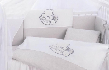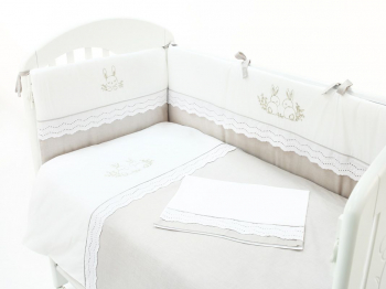КПБ Esspero Grand Royal (3 предмета) - комплект постельного белья от известной норвежской фирмы, производящей лучшие детские товары, состоит из наволочки, пододеяльника и простыни. Сделан набор, представленный в двух цветах на выбор, из натуральных тканей, украшен вышивкой с геральдическим вензелем, короной и заглавной буквой Е, а также кружевом и бантами.